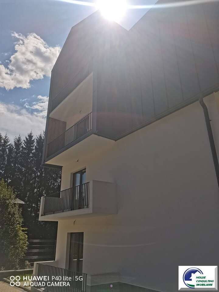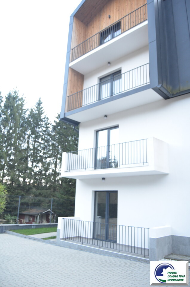 Agentia HOUSE REAL ESTATE CONSULTING IMOBILIARE va propune spre vanzare un apartament cu 2 camere, situat intr-un imobil nou , constructie 2023.Apartamentul este insorit, fiind pozitionat pe Sud-Vest si are vederea catre padure si catre Crucea Caraiman.Este usor accesibil, este bine structurat, are terasa la camera de zi si la dormitor iar la bucatarie are balcon.Amplasament semicentral in apropiere de punctele de interes ale statiunii, priveliste excelenta asupra masivului Bucegi.Constructia este realizata din cadre de beton si caramida porotherm, finisaje de calitate superioara, tamplarie PVC cu geamuri tripan, termoizolatie la exterior.Este situat la parter ,La pret se adauga TVA.Locuri de parcare,teren in cote indivize.