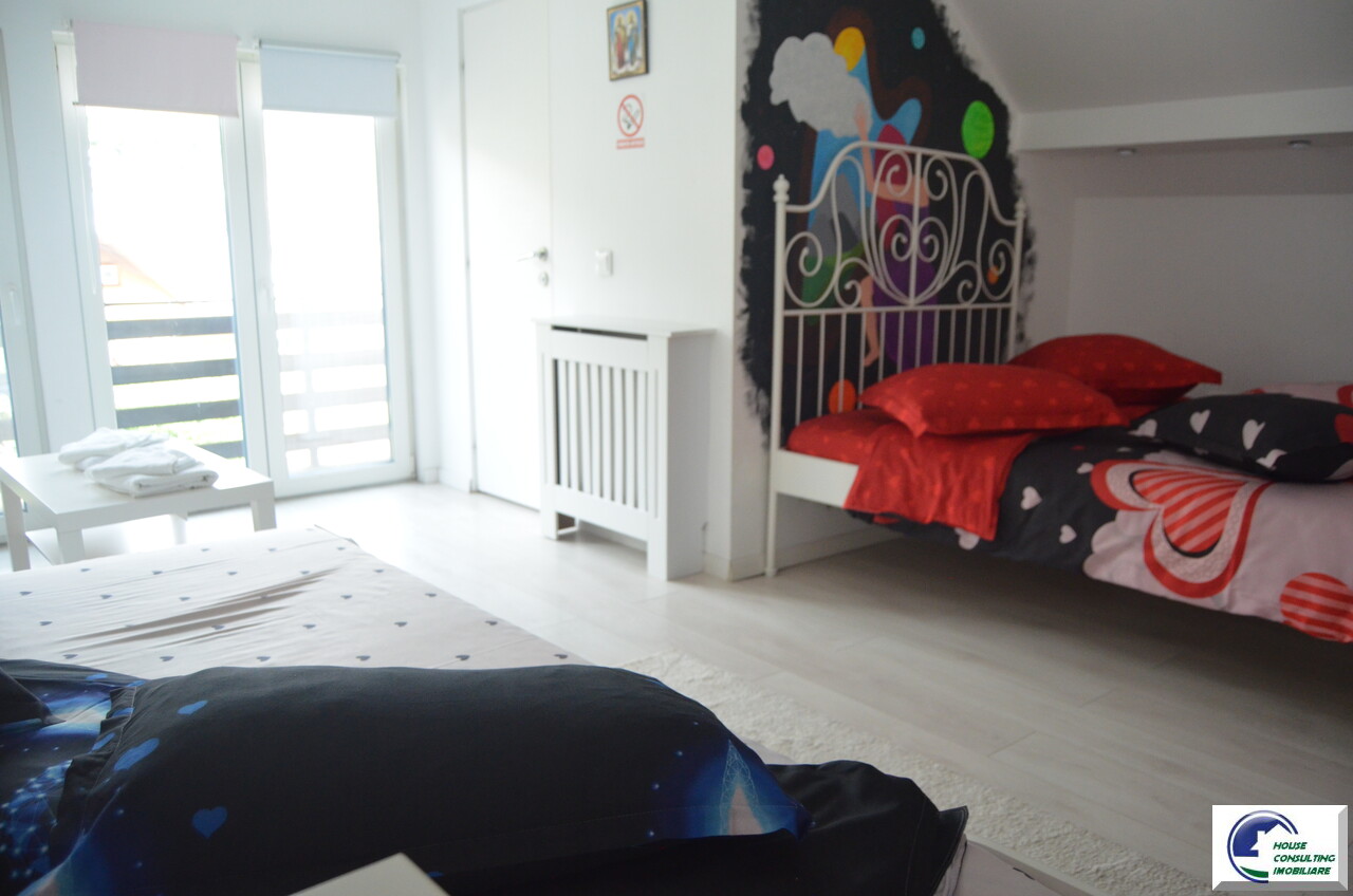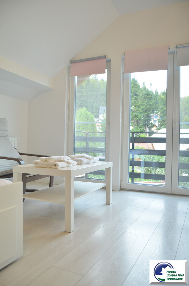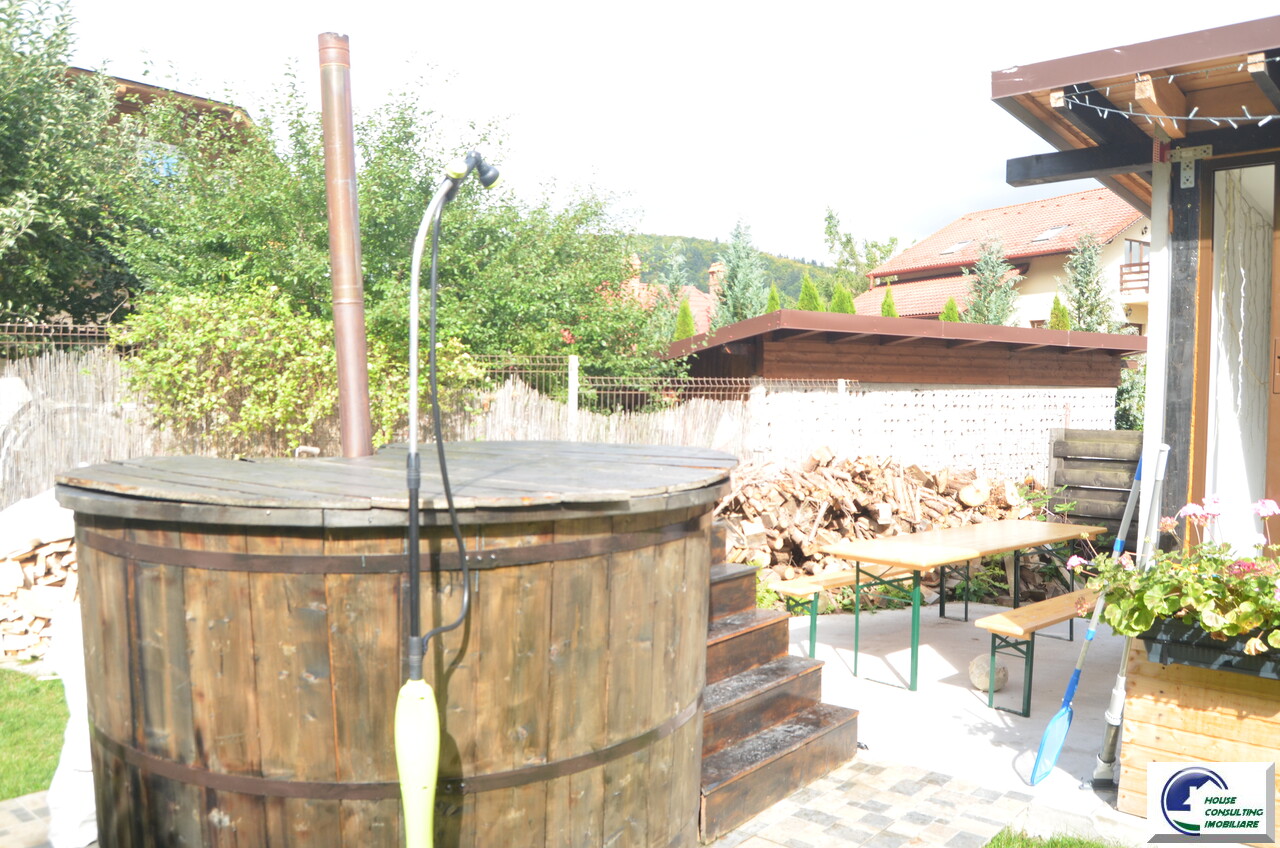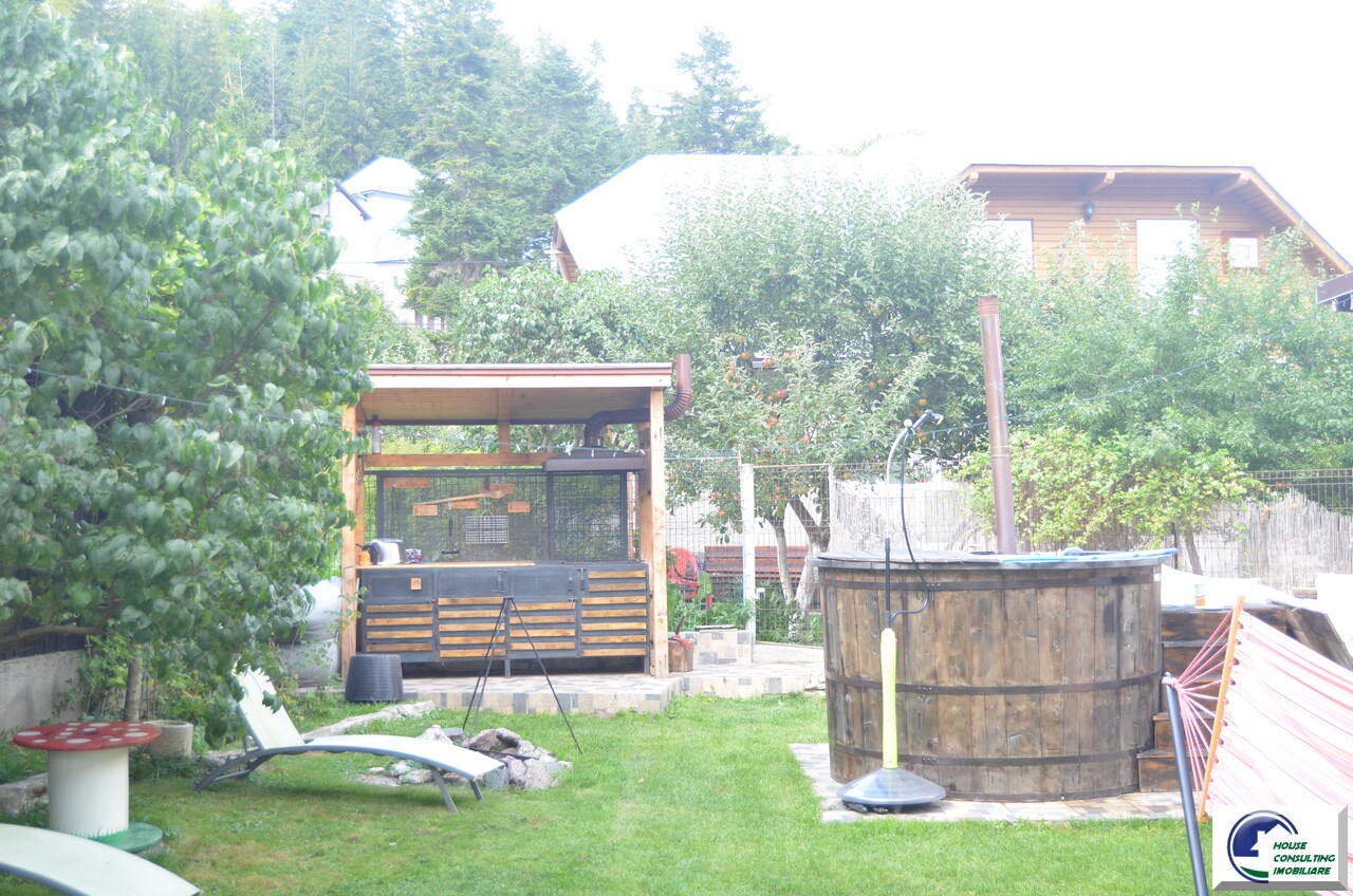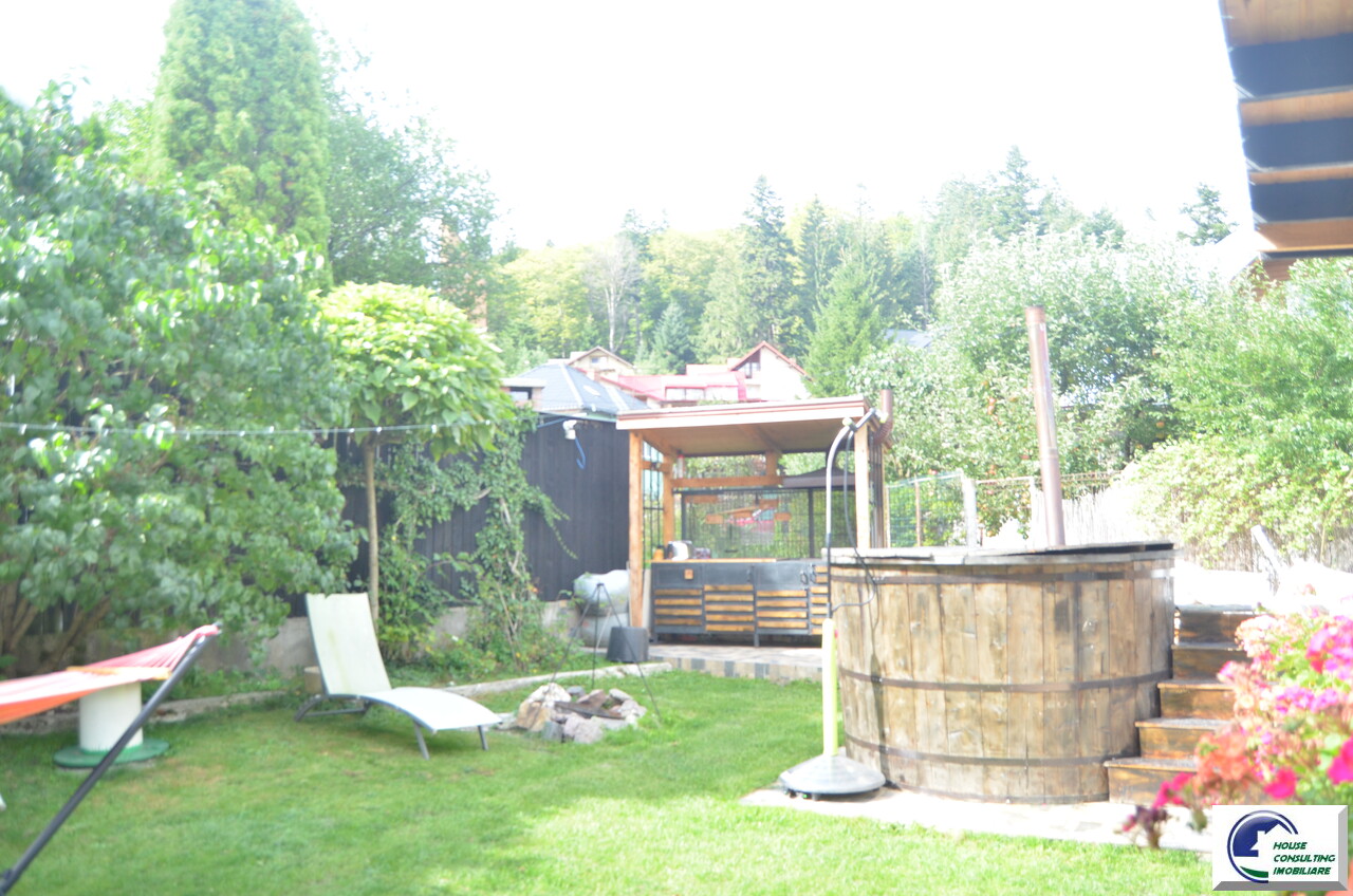 Va propunem spre vanzare o casa deosebita situata in Busteni,zona Valea Alba in apropiere de partia Kalinderu,o casa de vacanta situata intr-o zona linistita cu acces facil din oras si spre partie ,vedere catre padure si Masivul Caraiman,accesibila catre toate punctele de interes montan. Aceasta proprietate iti ofera echilibrul perfect intre confort, intimitate si oportunitate de investitie. Pentru iubitorii montani exista si o curte marginita de verdeata,frumos amenajata cu un ciubar din lemn ,gradina,zona BBq unde va puteti relaxa cu familia sau cu prietenii este un mare plus. Are o terasa de cca 25 mp amenajata cu geam termopan si o sobita inox pentru serile racoroase de iarna .Construita pe doua niveluri plus mansarda frumos amenajata cu un balcon ce ofera o frumoasa panorama, casa este ideala atat ca resedinta personala, cat si pentru inchiriere in regim hotelier (Airbnb, Booking) . Compartimentare : Parter -Suprafata utila totala: 40 mp -Amprenta la sol: 45 mp -Antreu ,hol,Living spatios ,Bucatarie open-space cu zona de dining,Baie complet echipata ,Oficiu (spatiu tehnic/depozitare) .Etajul are un dormitor matrimonial ,baie si al doilea dormitor cu balcon.Mansarda avand apx 33 mp suprafata utila avand o camera generoasa cu baie proprie , balcon spatios, cu vedere panoramica spre munti si padure. Teren 238 mp din care suprafata libera 201 mp. Beneficii: curte individuala,acces masina,ciubar din fibra sticla pt 6-8 persoane ,incalzit pe lemne ,amenajari elegante si moderne,functionalitate, finisaje in culori calde, mobilier nou,modern,practic si eficient,privelisti spectaculoase .Ideala pentru vacante sau inchiriere in regim hotelier ,zona verde, aer curat, apropiere de partie,zona centrala,liniste Pentru mai multe detalii si vizionari nu ezitati sa ma contactati
