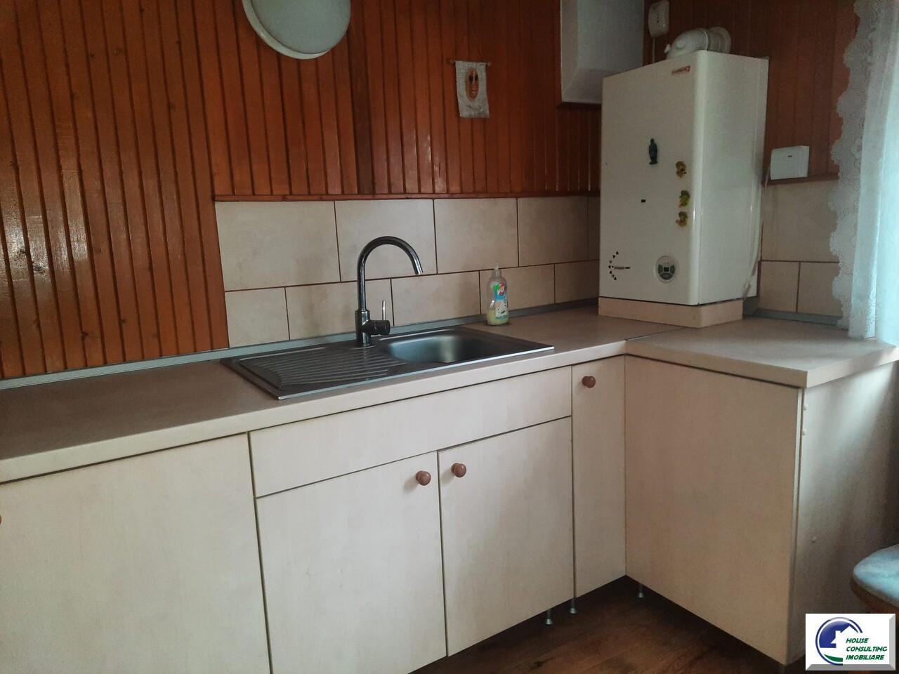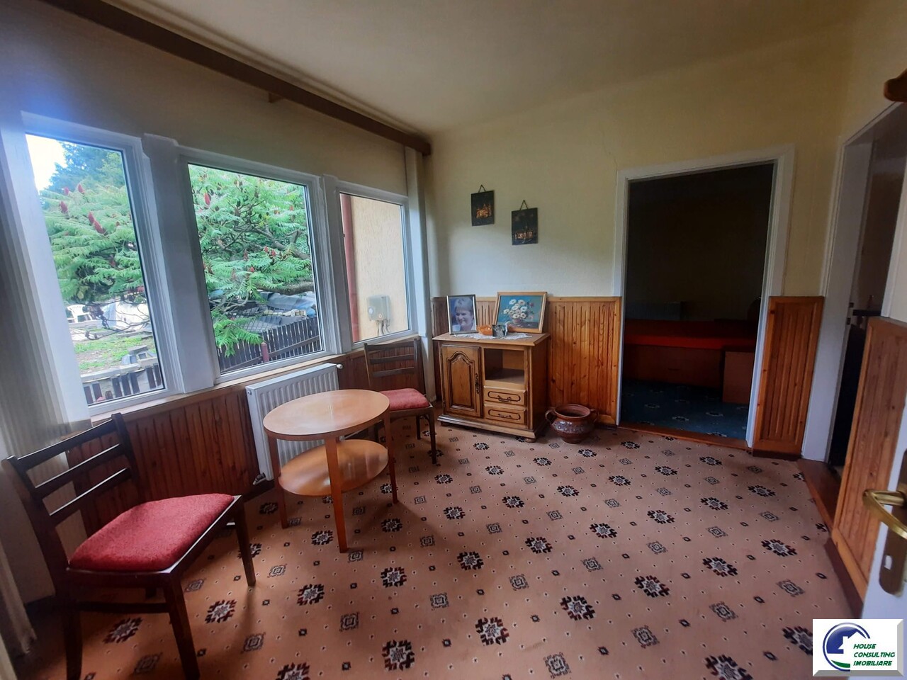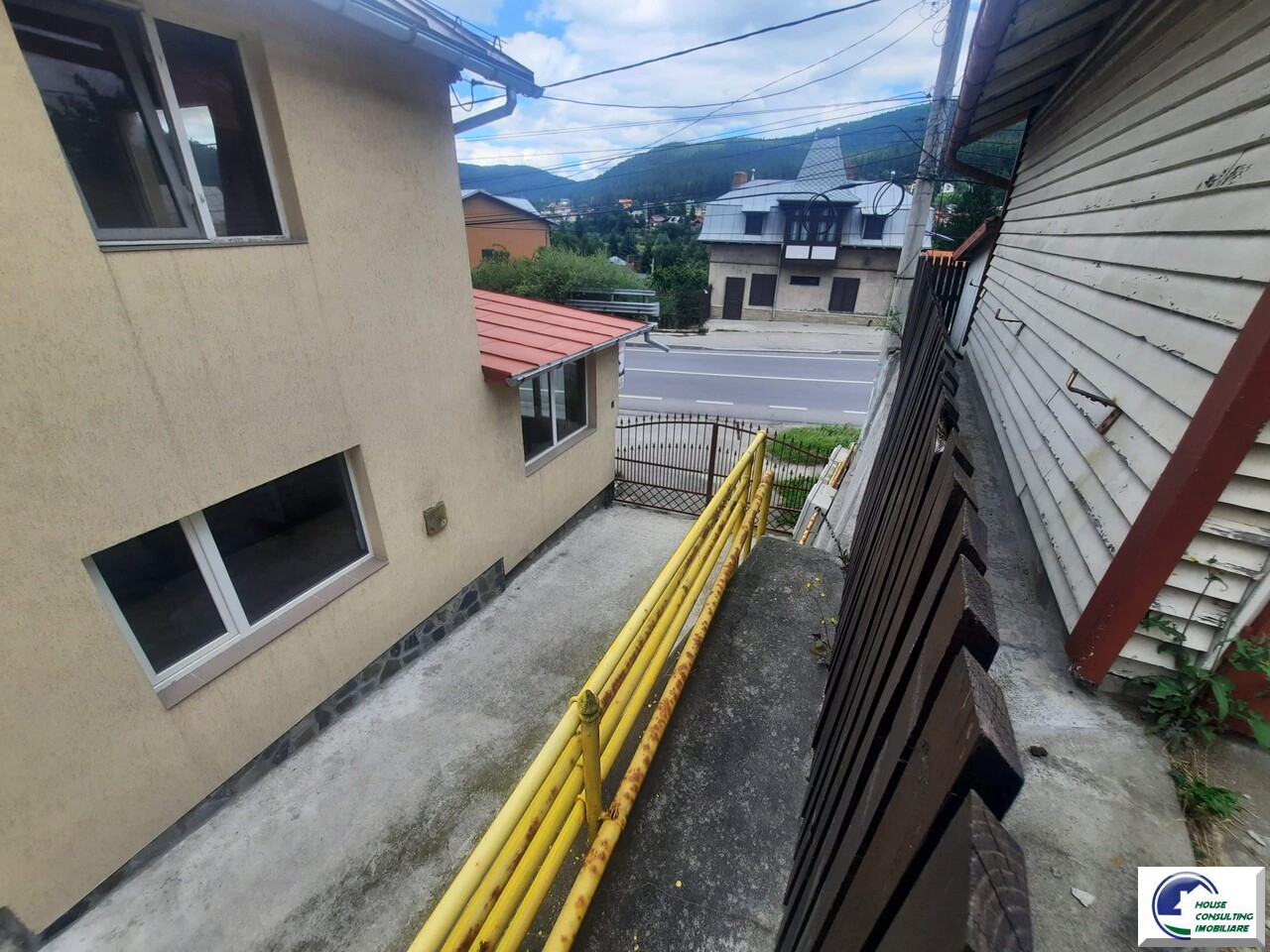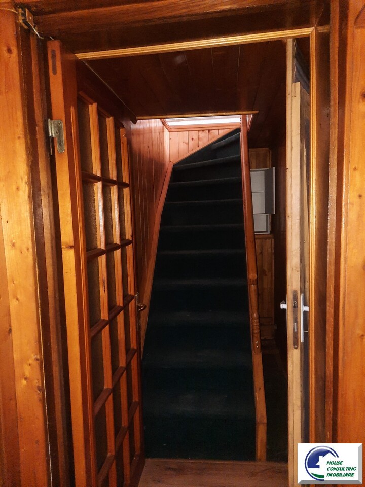 Casa de vanzare in Busteni, situata in zona semicentrala a localitatii in cartierul Poiana Tapului; casa este construita din lemn și piatră si este compartimentata astfel: