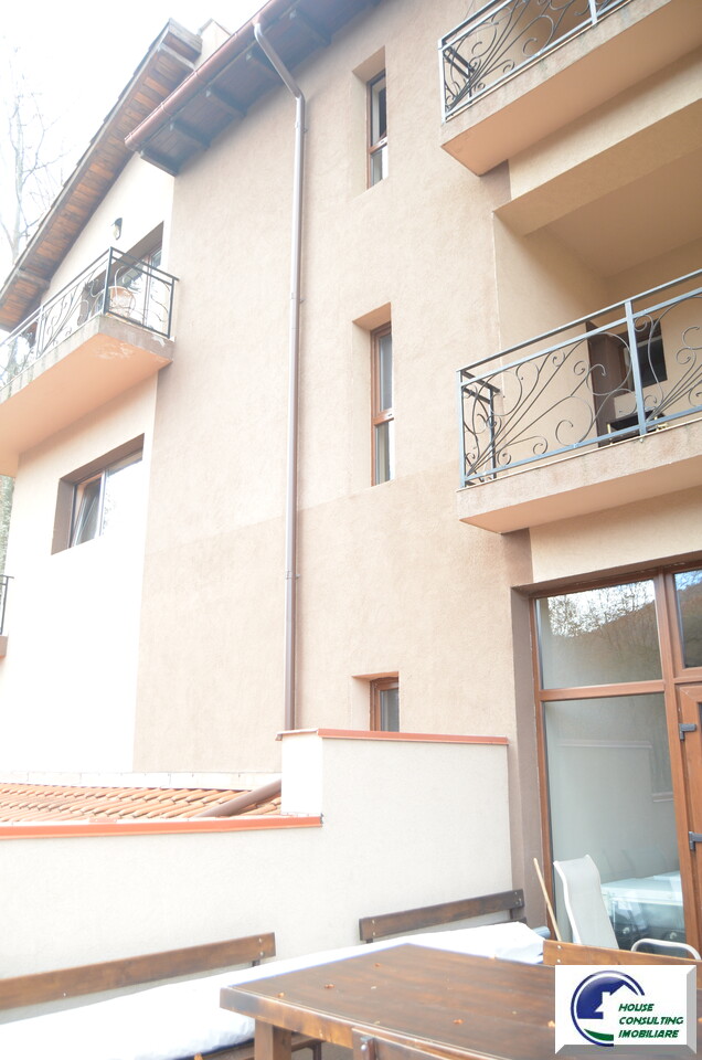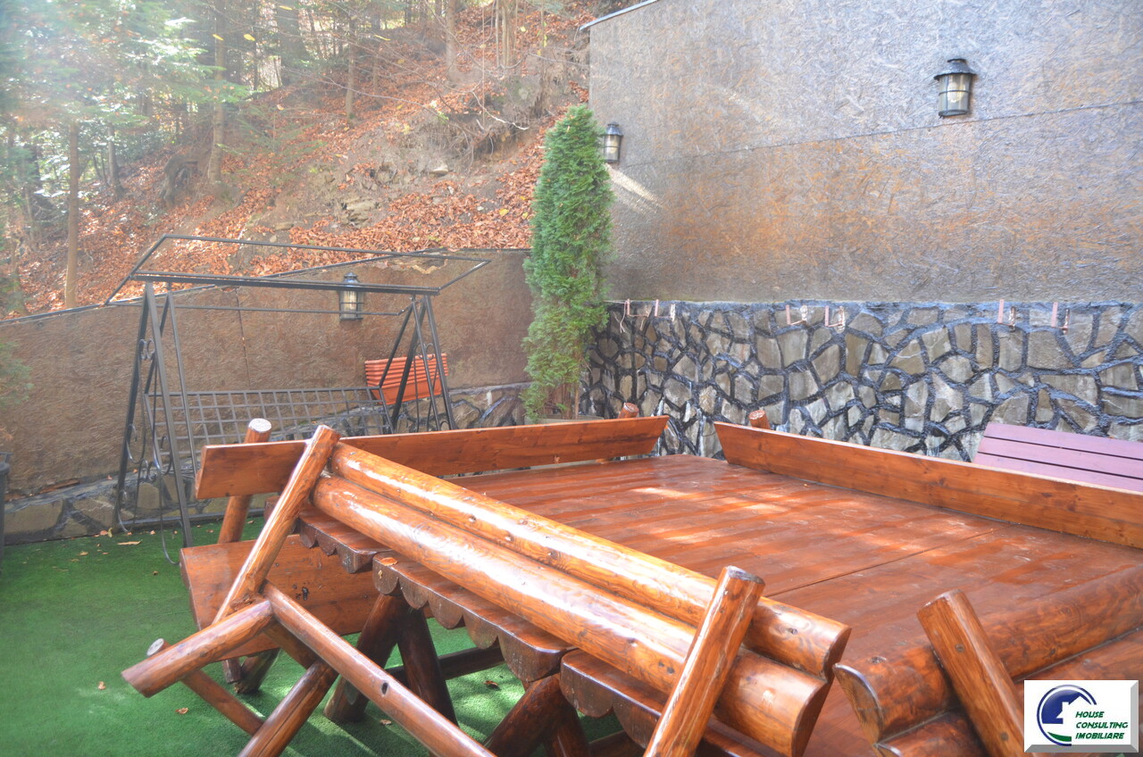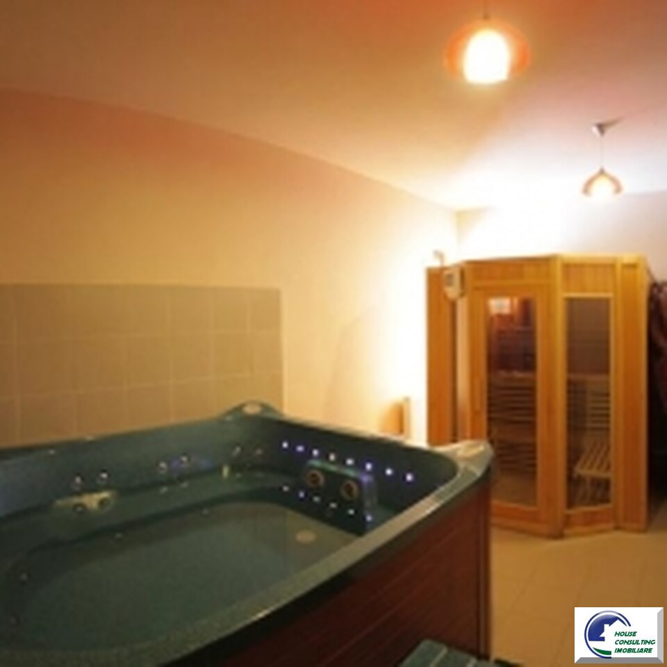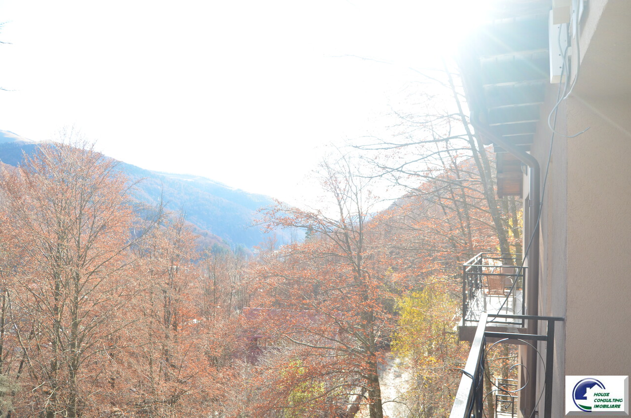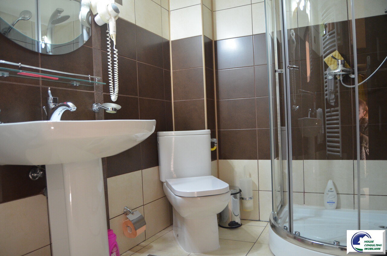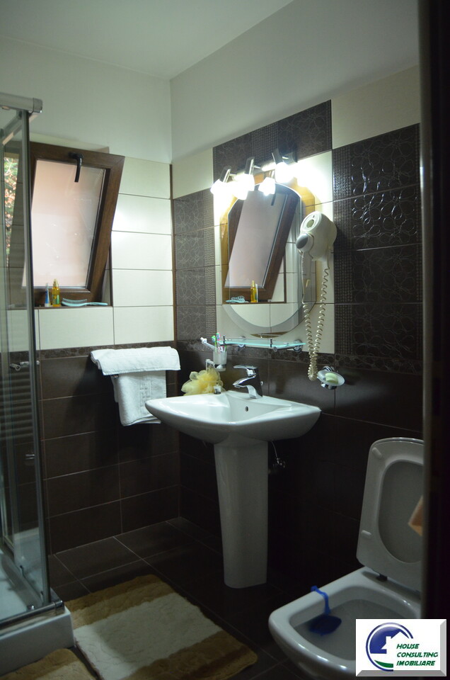 Proprietatea dispune de 18 camere matrimoniale ,un apartament cu 2 camere, toate mobilate, cu baie proprie, TV, minifrigider,balcoane.Bucatarie utilata complet, iar livingul/ restaurantul (de cca 90 mp) poate gazdui aproximativ 40 de persoane.Centrul spa prevazut cu jacuzzi si sauna,camere dus ,baie si sala de conferinta.In spate, in suprafata de aproximativ 100 mp, regasim o terasa deschisa, unde se afla gratarul si un loc de joaca pentru copii ,zona loby .Parcare proprie (aproximativ 8 locuri).