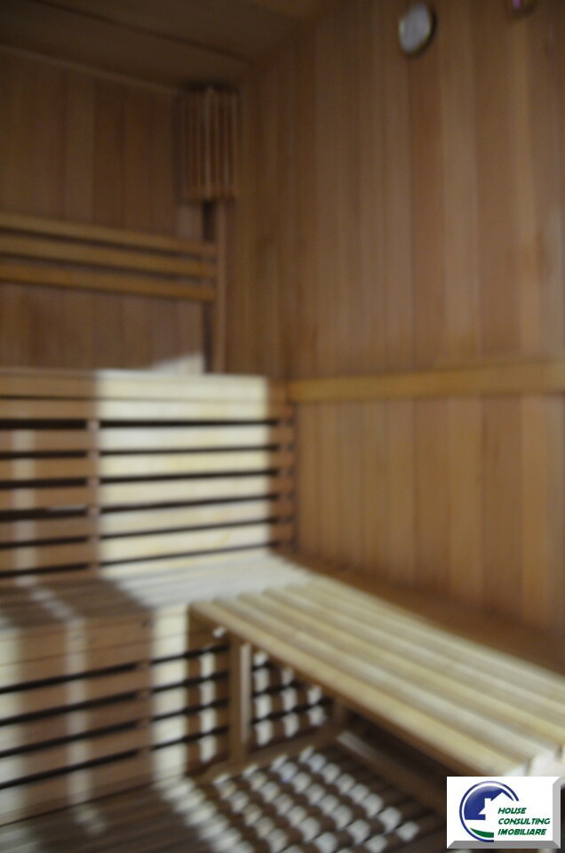 Etajul, cu suprafata utila de 160 mp, gazduieste 6 dormitoare, fiecare cu baie proprie si balcon si un spatiu conceput cu destinatia de lounge,sala de conferinte,terasa loby,sauna,jacuzzi,In spate, in suprafata de aproximativ 100 mp, regasim o terasa deschisa, unde se afla gratarul si un loc de joaca pentru copii ,zona loby