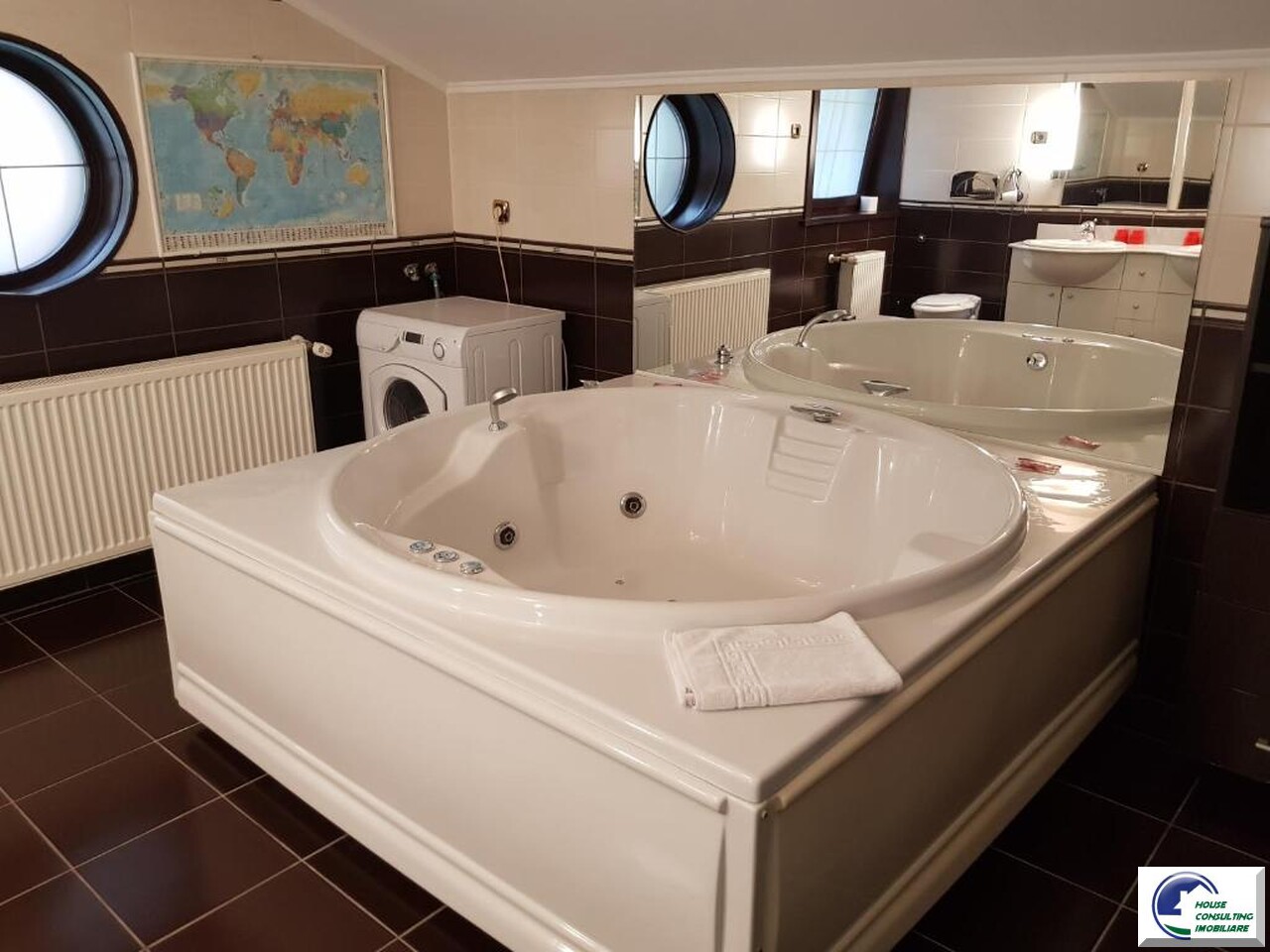 În sala de spa regăsim un Hydropool (Canada), utilizat pentru cromohidroterapie. Terasele exterioare generoase si logii.