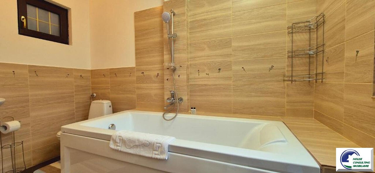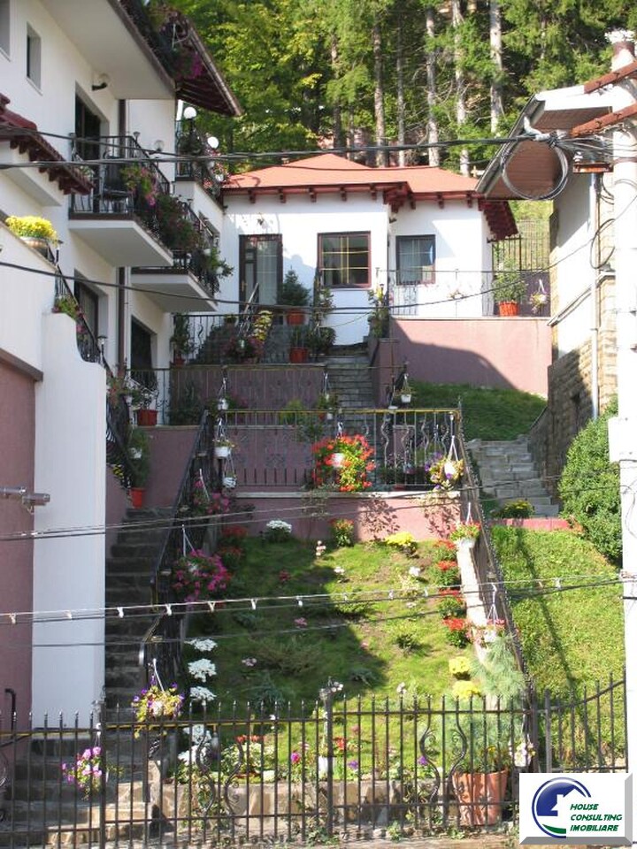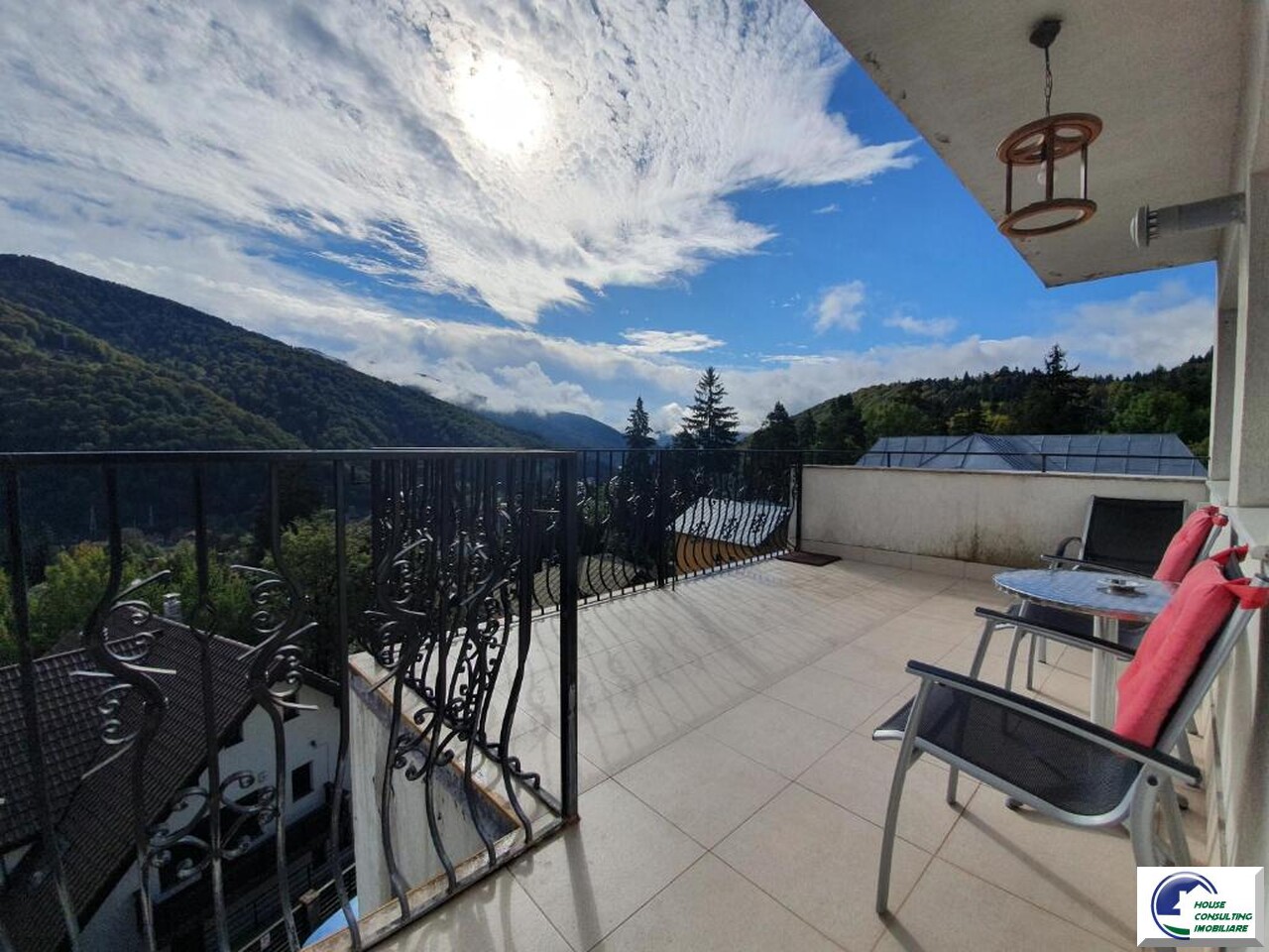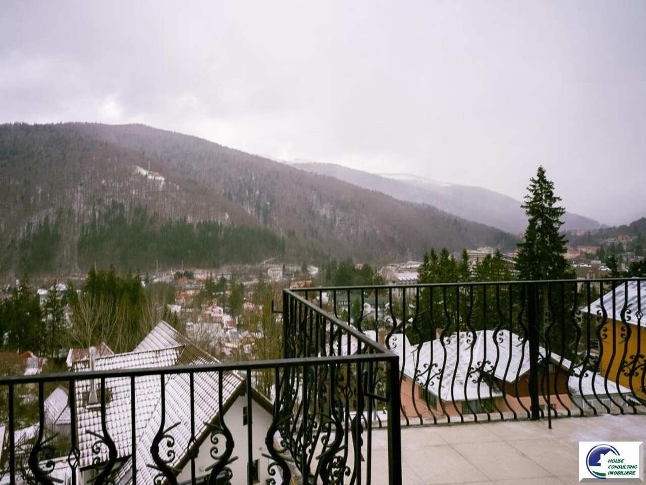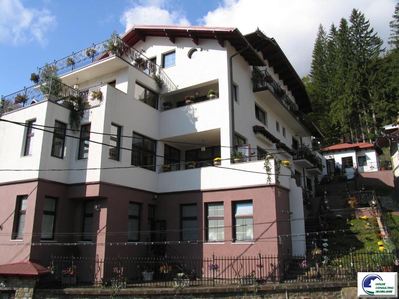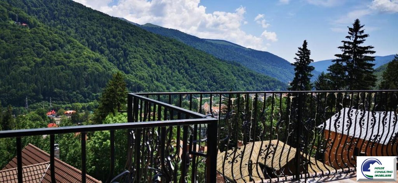 Agentia noastra vă ofera spre achiziție un imobil modern, amplasament deosebit,acces stradal,locuri de parcare,imobil spațios, luminos, cu o panoramă deosebită asupra orașului, amplasat într-o zonă foarte liniștită din localitatea Sinaia, județul Prahova, zona ultracentrală, la doar 500 m (aproximativ 7 minute de mers pe jos) de centrul orașului.Proprietatea prezentată este situată pe un teren de 747 mp. cu deschidere de 25 ml la drum asfaltat ,amprenta construcției fiind de 280 mp.Inginer constructor de profesie, proprietarul a realizat construcția în regie proprie, alegand cea mai frumoasa locatie ce ofera acces si panorama spectaculoasa catre toata Valea Prahovei,fără a face rabat de la calitate.Imobilul a fost construit în anul 2008, pe o structură de rezistență din cadre de beton armat și zidărie portantă, cu plăci de beton de 14 -18 cm grosime.Au fost executate numeroase lucrări de sistematizare verticală, incluzând ziduri din beton armat cu fundații de 1,20 m adâncime, zidărie și placaje din piatră, socluri, elemente din fier forjat etc.Pe teren se află două construcții, C1 și C2 reprezentand o zona de agrement de cca 115 mp, iar suprafața utilă totală însumată este de 1.215,11 mp, desfășurată pe S1 (Hof parter) + S + P + 1 + M.