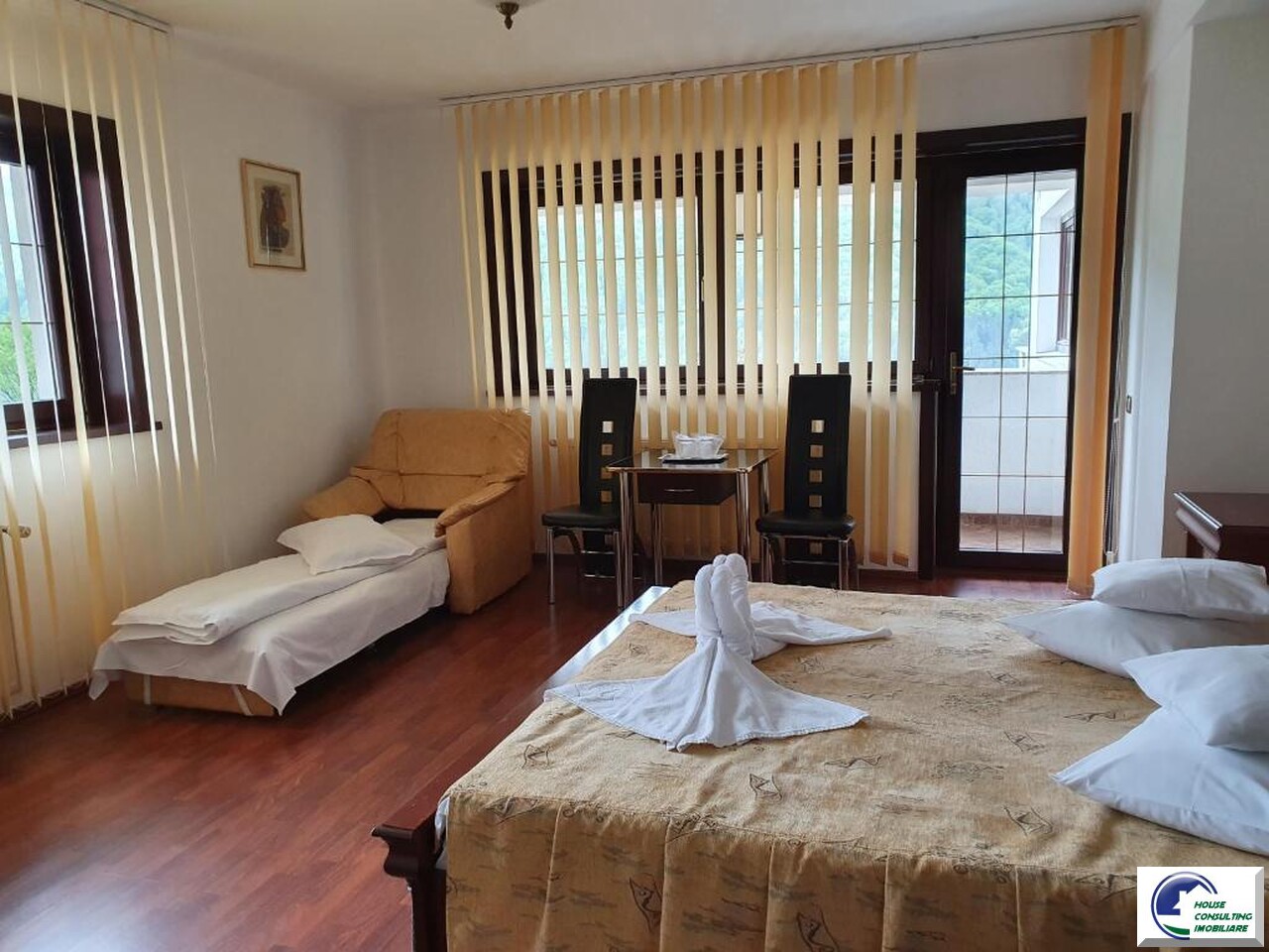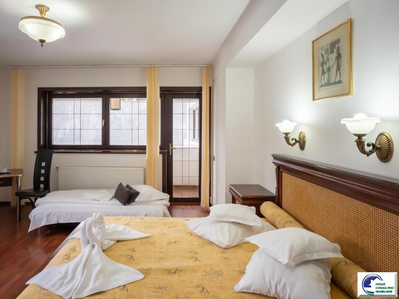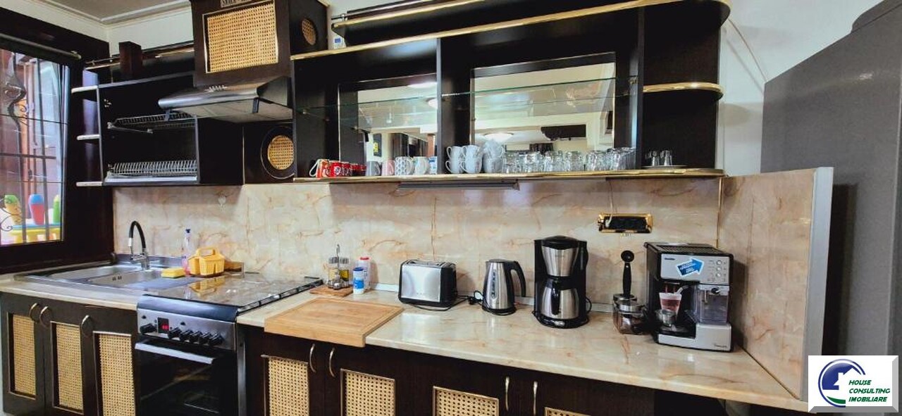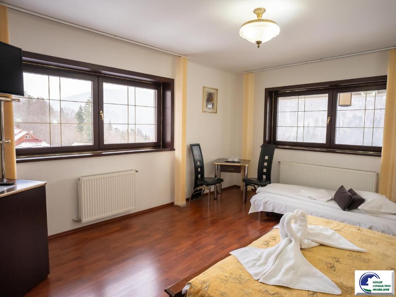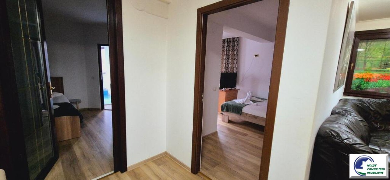 Agentia noastra vă ofera spre achiziție un imobil modern, amplasament deosebit,acces stradal,locuri de parcare,imobil spațios, luminos, cu o panoramă deosebită asupra orașului, amplasat într-o zonă foarte liniștită din localitatea Sinaia, județul Prahova, zona ultracentrală, la doar 500 m (aproximativ 7 minute de mers pe jos) de centrul orașului.Proprietatea prezentată este situată pe un teren de 747 mp. cu deschidere de 25 ml la drum asfaltat ,amprenta construcției fiind de 280 mp.Inginer constructor de profesie, proprietarul a realizat construcția în regie proprie, alegand cea mai frumoasa locatie ce ofera acces si panorama spectaculoasa catre toata Valea Prahovei,fără a face rabat de la calitate.Imobilul a fost construit în anul 2008, pe o structură de rezistență din cadre de beton armat și zidărie portantă, cu plăci de beton de 14 -18 cm grosime.Au fost executate numeroase lucrări de sistematizare verticală, incluzând ziduri din beton armat cu fundații de 1,20 m adâncime, zidărie și placaje din piatră, socluri, elemente din fier forjat etc.Pe teren se află două construcții, C1 și C2 reprezentand o zona de agrement de cca 115 mp, iar suprafața utilă totală însumată este de 1.215,11 mp, desfășurată pe S1 (Hof parter) + S + P + 1 + M.