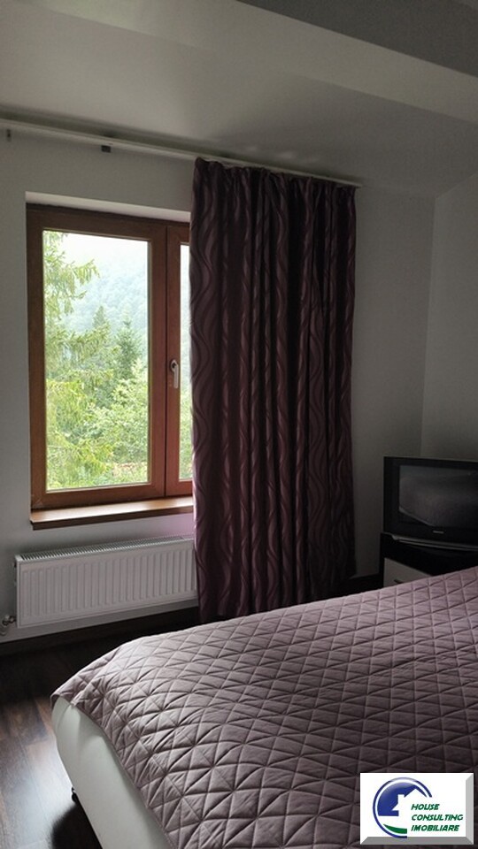 Predeal,amplasament deosebit,zona semicentrala,la 20 minute de partia Clabucet mers pe jos,priveliste neopturabila,apartament cu 2 camere in bloc nou 2013,pozitie sud-est ,vedere muntii Bucegi,parcare exterioara,parchet laminat,gresie faianta calitate superioara,baia utilata,et M /2+m,sc 60 mp,dormitor,living,baie,bucatarie open-space,balcon ce ofera o panorama frumoasa,utilitati-apa,gaz,curent,zugraveli lavabile,parchet ,usi MDF celulare furniruite la interior ,tamplarie exterioara pvc cu geam termopan ,centrala termica proprie,locuri prevazute pentru frigider, masina de spalat vase si rufe ,prize cablu tv si telefon ,instalatie electrica de prize si iluminat ,scara blocului luminata cu sistem modern senzorial,parcare inclus in pret,holuri placate cu gresie de calitate superiaora,administratie,izolatii exterioare,finisaje cu tencuiala decorativa,radiatoare,instalatii sanitare complet echipate ,ct,bucatarie.Se inchiriaza pe termen mediu sau lung.Mobilat si utilat